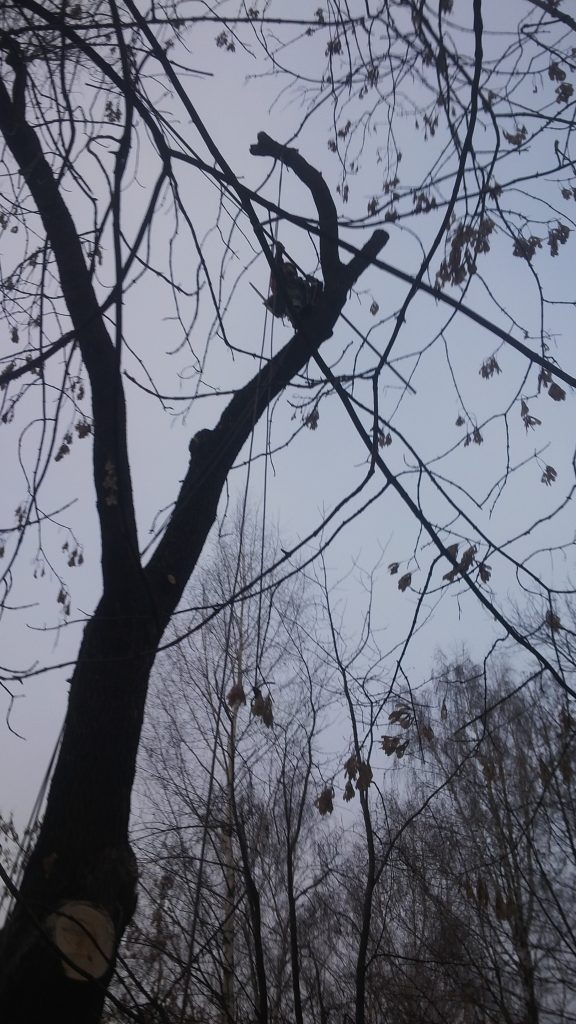 Спил березы с вывешиванием в Троицке.IMG_20141012_102324 Не так давно, к нам обратился с Заказчик с просьбой удаления двух ствольной березы. После обследования березы было выявлено, что береза не совсем еще гнилая. Место для валки дерева целиком, было ограниченно, плюс Заказчик изъявил желание, разобрать березу частями.IMG_20141012_103238 Одевшись в снаряжение, наш опытный арборист (альпинист) взобрался на березу, постепенно, обрезая нижние ветки и поднимаясь выше. Возле березы спиленные ветки сложили в кучу, для благополучного спуска веток и дабы не попортить газон Заказчика. Береза была разобрана за 3 часа, с перекурами. По желанию Заказчика толстые ветки попилили на дрова и сложили, ствол дерева также был распилен на чурбачки и уложен.IMG_20141012_105642 Благодаря большому опыту арбориста, работы были произведены быстро, четко и качественно. Ведь такие работы должен выполнять только профессионал, с хорошим оборудованием.           С Уважением Индивидуальный предприниматель Фадеев А.А.