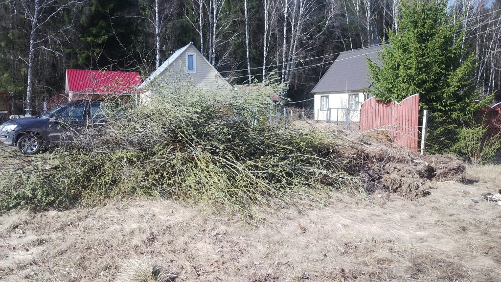 Вчера производили удаление поросли с выкорчевкой. Процесс работы занял порядка одного светового дня. Вся поросль была сложена в кучи в процессе Заказчик ее сожжёт.